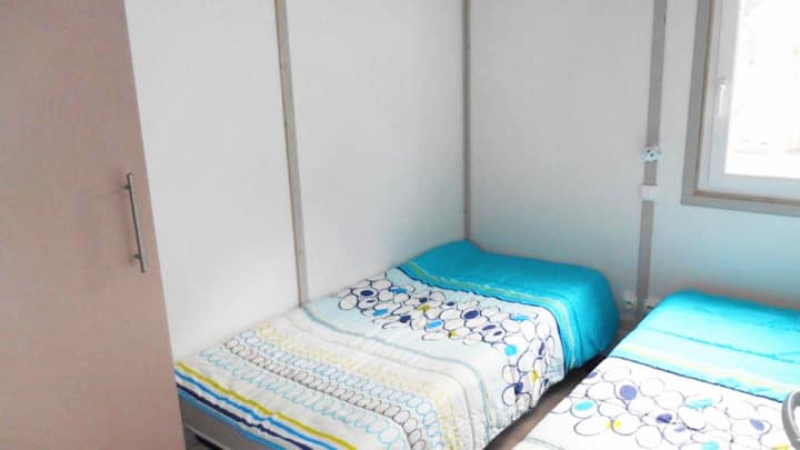 • חדר שינה שני: שתי מיטות יחיד, וילונות האפלה