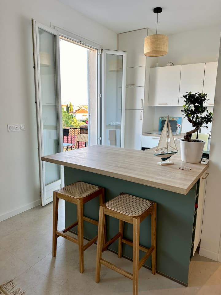 Bright new T2 Cannes, Palais & Beachparking