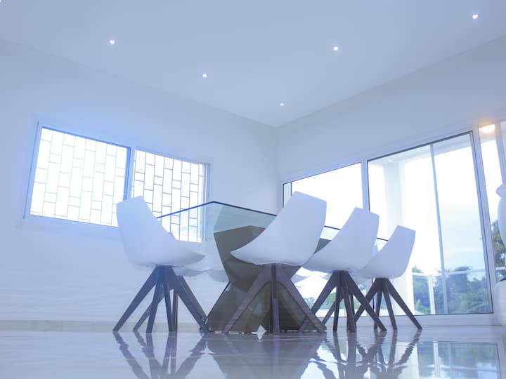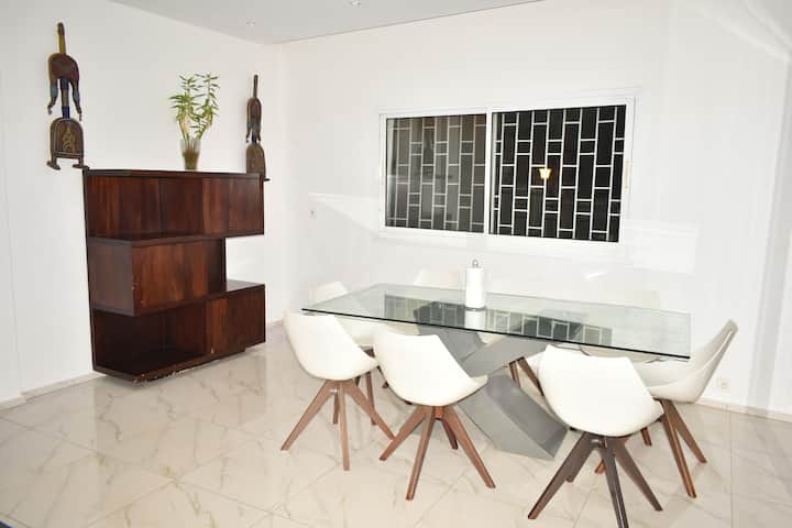 ממוקמת ב - ODZA בקומה הראשונה של וילה יוקרתית חדשה, דירה זו בגודל 300 מ"ר על מגרש של 1000 מ"ר, הנגישה על ידי כביש סלול, נהנית מכל הנוחות המודרנית: מכשירי חשמל ביתיים מלאים, מים חמים וקרים, מיזוג אוויר, כבלים, תעלה +, Wi - Fi, רשתות יתושים, מטפל, חניה פרטית, מצעים, מצעים, מיטת תינוק, גנרטור פוטו - וולטאי לגיבוי
