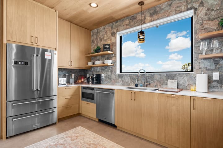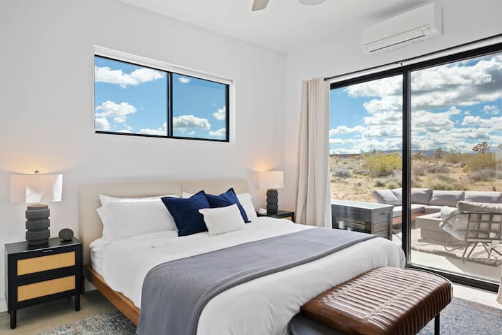 תוכלו לחוות את הקסם של המדבר בבנייה החדשה והמודרנית שלנו. הבנייה החדשה שלנו, השוכנת בפרברים, 20 דקות מהכניסה לפארק הלאומי JT, מציעה עיצוב מלוטש, נופים עוצרי נשימה ואווירה שלווה. מושלם לצפייה בכוכבים בלילה החשוך או פשוט להירגע. כאן לא תמצאו פנסי רחוב, לא תמצאו רעש ממכוניות ברחוב - רק צליל הרוח מרשרשת דרך המדבר. הזמינו עכשיו מקום מפלט מדברי שאין שני לו!