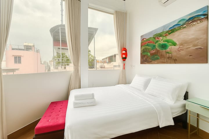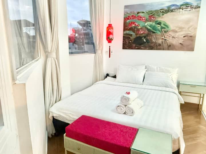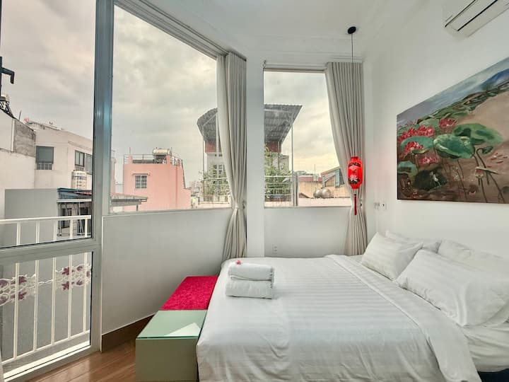 סוויטת הסטודיו בהשראת הודו-סין, החבויה בתוך סמטה שקטה רגעים ספורים מהמגדל הפיננסי האייקוני Bitexco (Saigon Skydeck), מציעה ניגודיות נדירה: פעימות העיר בחוץ, עולם של אינטימיות בפנים.