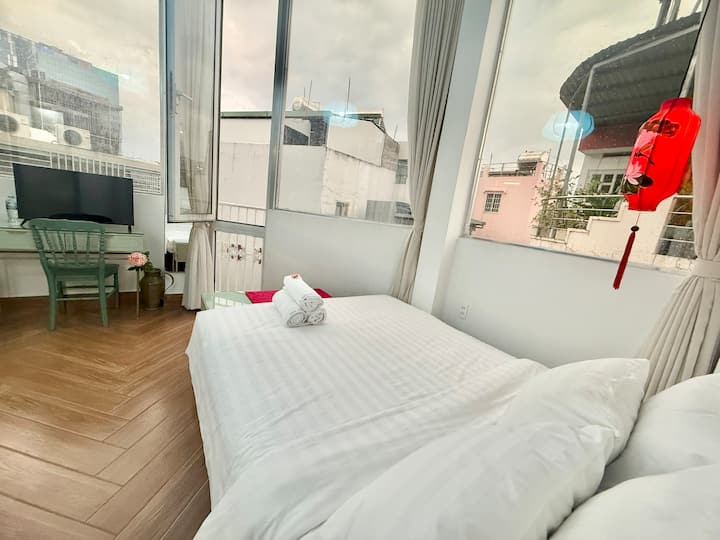 סוויטת הסטודיו שייכת ל-Cherry Blossom - אוסף אוצרות של יחידות דיור בעיצוב מוביל ברחבי מרכז העיר הו צ'י מין.