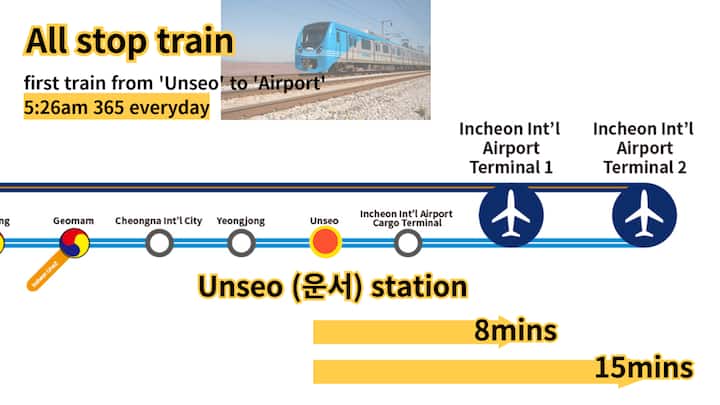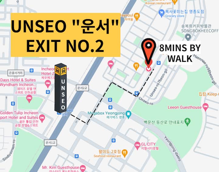 א: 8 דקות הליכה מתחנת אונסו, 15 דקות משדה התעופה של אינצ'ון, יחיד, זוגי