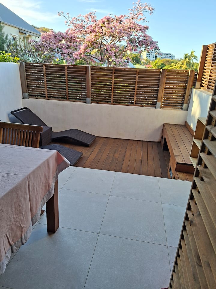סטודיו St-Leu + גינה וכיסאות חוף במרחק 130 מ' מחוף הים!