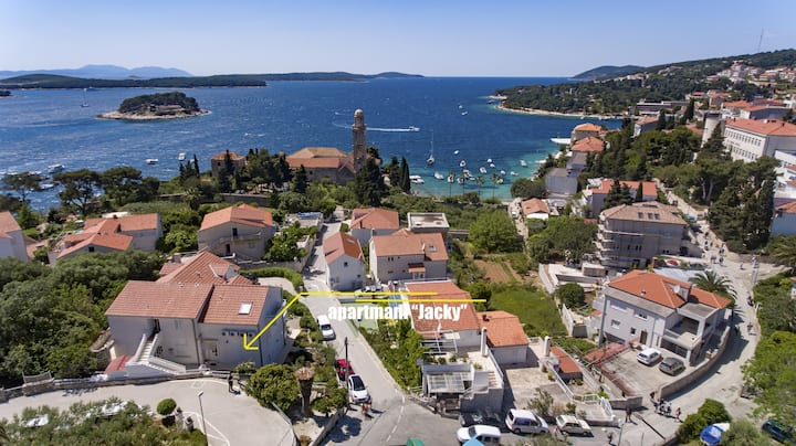 הבת שלי מריה ואני מ - Hvar. אנחנו שוכרים דירות בבית המשפחה שלנו בעיר Hvar.