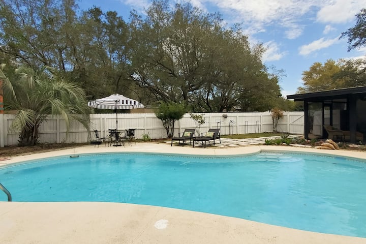 בית עם 4 חדרי שינה, מתאים לכלבים, עם בריכה, פטיו, מכונת כביסה ומייבש כביסה