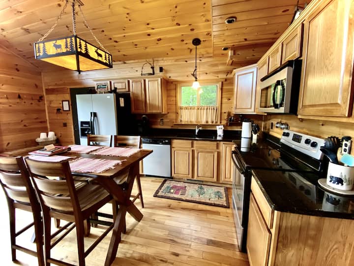 עיצוב מודרני כפרי, אח מאבן, מכבי אש, ג'קוזי נוצץ, דיג, טיולים רגליים. דקות ספורות מה - N.O.C.! נשמח לשמוע מכם, להתקשר אלינו או לשלוח לנו אימייל כדי לשאול על "קסם הר ". הזמנה אונליין זמינה מסביב לשעון