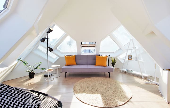 ברוכים הבאים לאחד מהמקומות הייחודיים ביותר ברוטרדם! מתחם המגורים הזה, שתוכנן על ידי האדריכל ההולנדי פיט בלום, הוא פשוטו כמשמעו קוביות, מוטות מעל ב -45 מעלות. התוצאה היא בניינים שנראים, מרגישים ומתנהגים כמו שום דבר שתמצאו במקומות אחרים בעולם. לחיות כמו מקומיים במרכז רוטרדם.