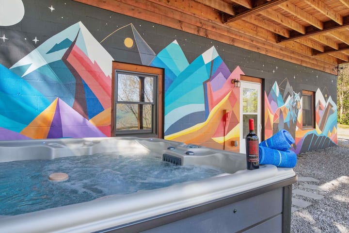 בקתה עם נוף להרים, ג'קוזי, מדורת גן, חדר משחקים