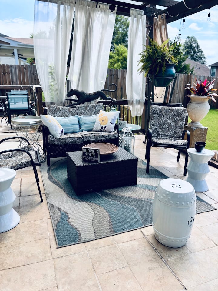 צאו החוצה לפאטיו מכוסה מהמם לכל העונות עם מזרקת מים מרגיעה ובור אש נעים, שני גרילים. המרחב המושלם להירגע, ביום או בלילה. מותר לעשן במרחב החיצוני.