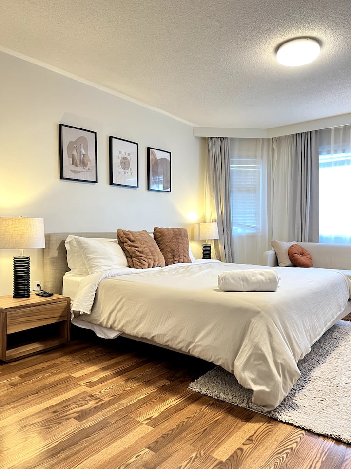 5 חדרי שינה מרווחים | מדורה, חניה חינם, ליד שדה התעופה
