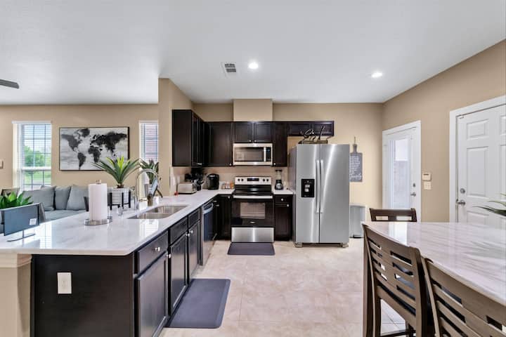 ברוכים הבאים לאלגנטיות עירונית שהוגדרה מחדש! ב - Airbnb יש סוויטת הורים בקומה הראשית, שמציעה נגישות ופרטיות שאין שני להן. עיצוב מוקפד, שירותים יוקרתיים לאורח ומיקום מעולה מבטיחים שהייה מסוגננת ונוחה. עם בריכת אגם ג'ו במרחק דקות ספורות, יש לכם גישה להשכרת ספורט ימי, פארקים ומסלולי הליכה. הפכנו את המוסך למקום לכל הגילאים לצחוק וליהנות! פינג פונג, חור תירס וירוק לכל המשפחה