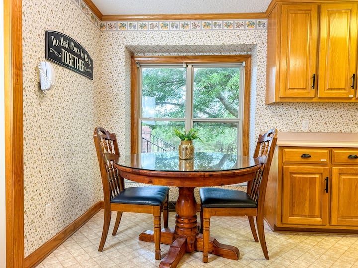 למפגשים וארוחות, חדר אוכל נפרד מאותת עם שולחן גדול שיכול להכיל עד 8 אורחים. מכאן, דלתות צרפתיות נפתחות לחצר האחורית, שם אורחים יכולים לספוג את אור השמש.