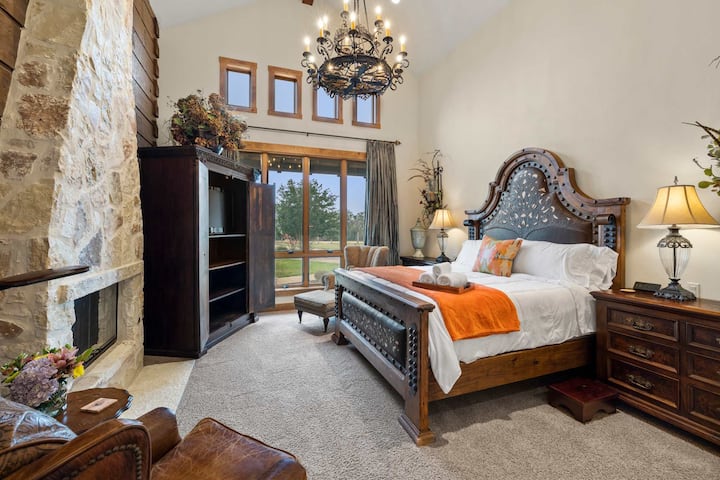 חווה רוסטד רוף, השוכנת בלב טקסס היל קאנטרי, היא אחוזה פרטית בגודל 320 דונם עם בית ובריכה מדהימים. עם 13 מיטות ב-5 חדרי שינה ו-5 חדרי רחצה, מקום המפלט המפואר הזה מושלם למפגשי משפחה, חתונות, מפלטי בריאות ומפגשים בכל הגדלים. כל פרט מציג אלגנטיות ואומנות, מהפאר של הקורות החשופות בתקרת החדר הגדול ועד לקסם הכפרי של צריחי העץ והאבן והעץ המוקפדים בכל מקום.
