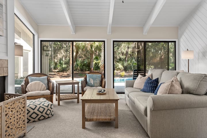 היכנסו לגן עדן ב - Coconut Cabana, שם גנים טרופיים שופעים, אורות מחרוזת מנצנצים ובריכה מחוממת פרטית מכינים את הקרקע לנופש המושלם של Sea Pines. בית החווה המעוצב בקפידה, השוכן במובלעת שקטה וחופית במרחק של 0.6 מייל בלבד מחוף הים, מציע נוחות ללא מאמץ עם פריסה ללא מדרגות - ללא מדרגות בשום מקום, אפילו לא בכניסה - מה שהופך אותו לאידיאלי לאורחים בכל הגילאים ורמות הניידות. ליהנות מרכיבה נופית של 5 דקות על אופניים או הליכה נינוחה של 10 -12 דקות לחופים החוליים של חוף סי פיינס.