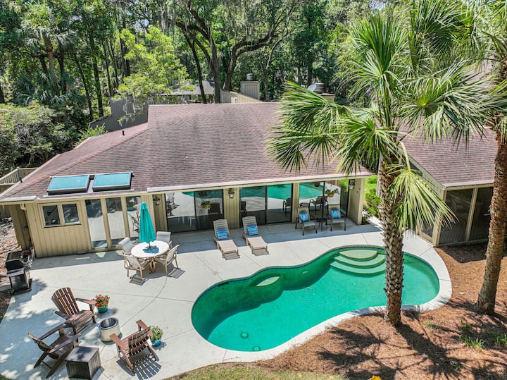 • מיקום בלעדי של Sea Pines: חבוי ב - Deer Run Lane, ומציע גישה ישירה למסלולי אופניים, חופים בתוליים ואטרקציות מקומיות מובילות.