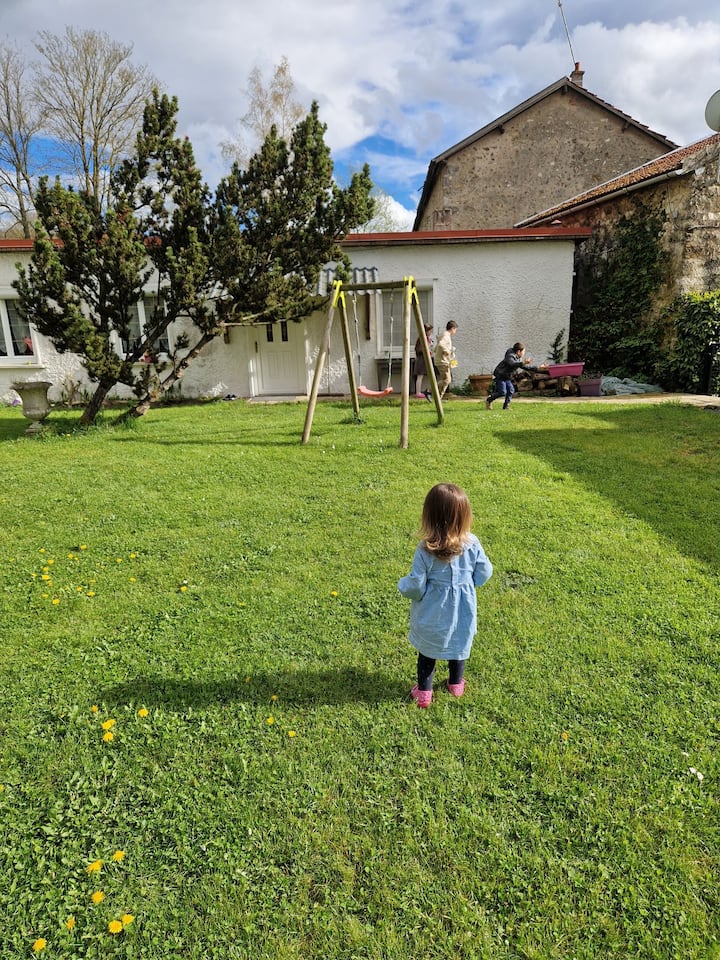 בית מגורים מקסים בגודל 200 מ"ר הממוקם בלב Grande Vallée de la Marne. עם ארבעה חדרי שינה ו -1,000 מ"ר של אדמה, לקוטג' הזה יש גם נכסים אחרים: חניה סגורה למכוניות שלכם וגינה מעולה בין היער לכרמים.