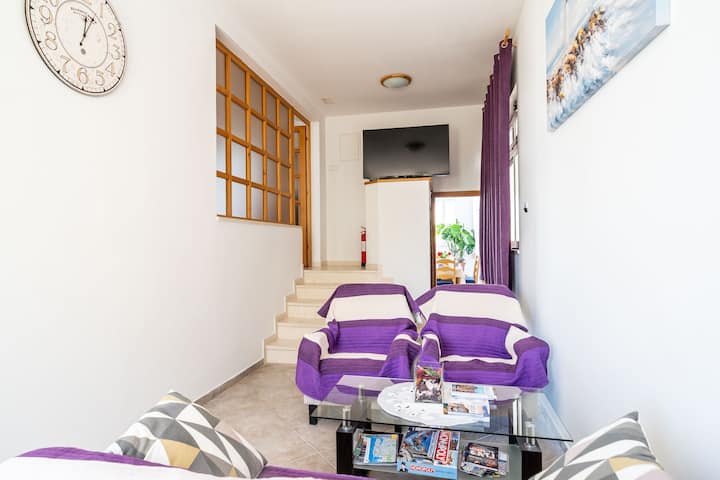 דירה וחדר קאזו - דירת שלושה חדרי שינה עם מרפסת ונוף לים