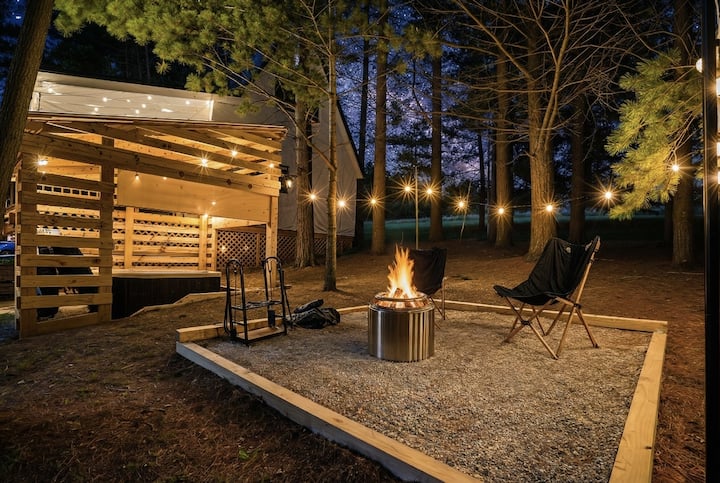ג'קוזי + מדורת גן | בקתה מודרנית מעץ לשניים