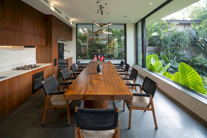 • בווילה יש שני פינת אוכל מקורה וכל אחת יכולה להכיל עד 12 אורחים. יש גם מקומות ישיבה נוספים בדלפק המטבח שיכולים להכיל 4 אורחים.