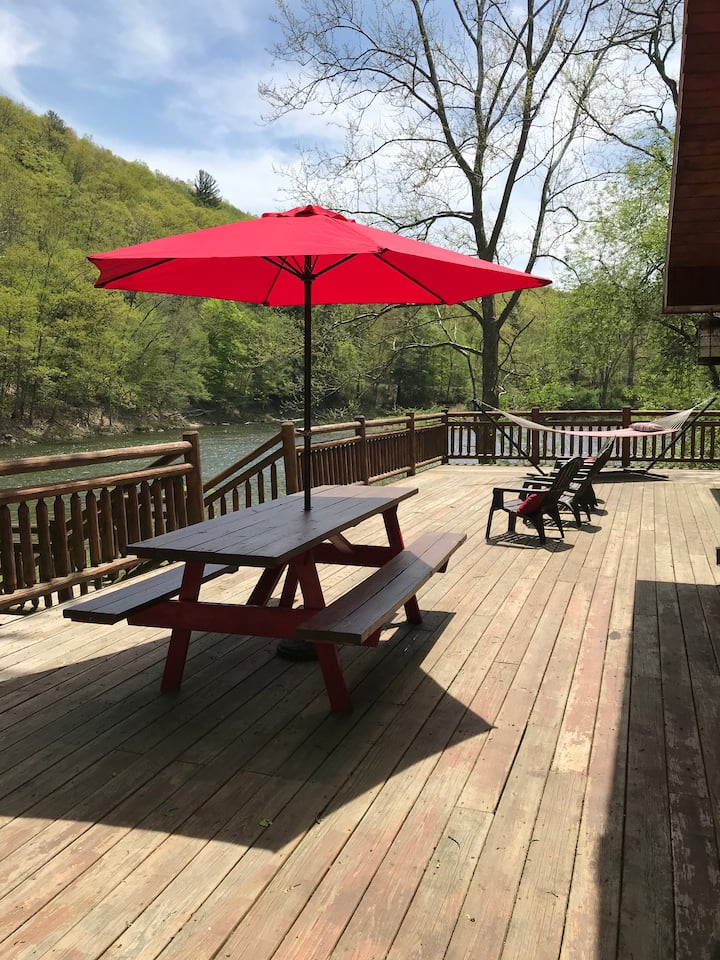 בקתת עץ מותאמת אישית עם חזית נהר מרהיבה