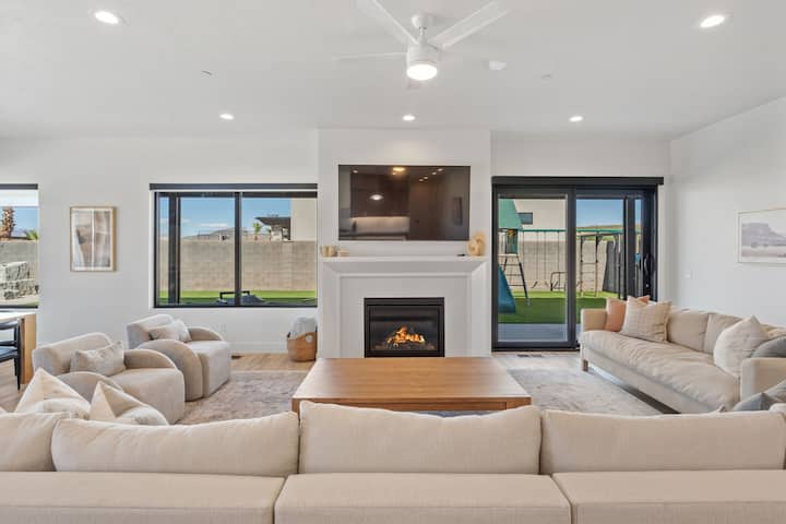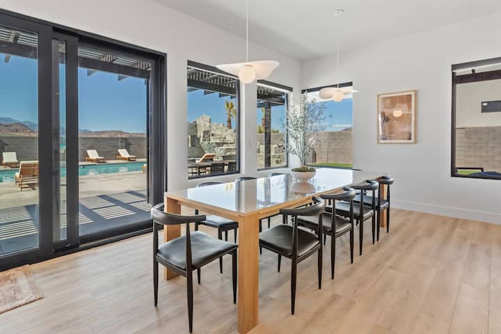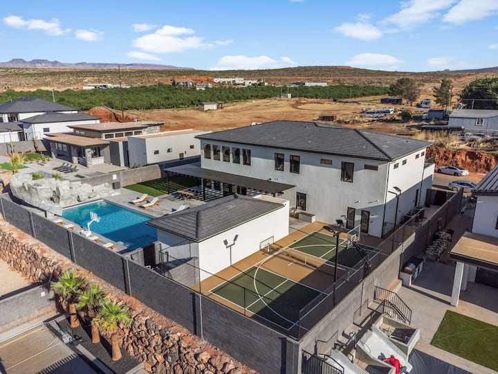 להתעטף ביופי של דרום יוטה בבית החדש יוצא הדופן הזה! הוא יכול להכיל עד 41 אורחים והוא המקום המושלם למפגשים גדולים. עם 8 סוויטות הורים, סוויטת קווין אחת וחדר קומתיים נדיב, כל אורח מקבל קייטרינג בסטייל. ליהנות מהשירותים המדהימים לאורח, כמו חדר תיאטרון חדשני, קיר טיפוס וחדר טרמפולינה. להירגע בבריכה עם מגלשת סלעים מרגשת, או להשתמש בחדר הכושר, בסאונה ובאדים כדי להירגע באופן אולטימטיבי.