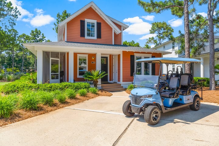 בית חוף יפהפה באתר הנופש הסגור עם עגלת גולף עם 6 מושבים.