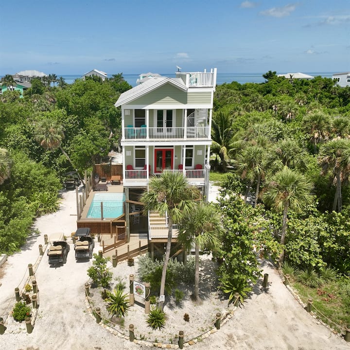 סיפונים במפלס העליון: Tipsy Turtle מתגאה בארבעה סיפונים עליונים פרטיים רק צעד אחד מהסלון, שניים מחדרי השינה, ויש את מרפסת הקן של העורב עם נופים מרהיבים של מפרץ מקסיקו, פיין איילנד סאונד, קאיה קוסטה השכנה וגגות הבתים הצבעוניים של צפון קפטיבה. בחרו מקום עם מקומות ישיבה נוחים בחוץ לקפה בוקר או לקוקטייל ערב וטבלו בסביבה הטרופית!