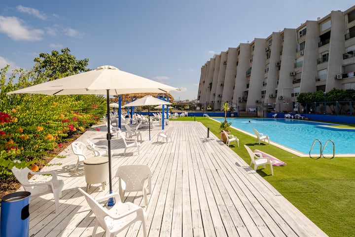 GW014 Gugel Waves פאטיו ודירה עם נוף לים ליד הבריכה