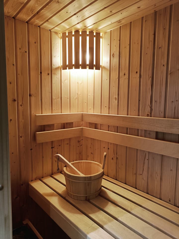 אפשר להירגע כאן עם מקלחת חיצונית וסאונה.
