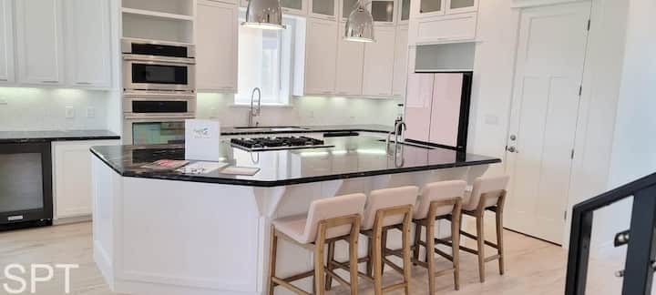 כשאתם חושבים איך צריך להיראות בית חוף בסרט, זה כנראה מתאים לחלום הזה. דלפקים עוצרי נשימה של מפל קוורץ לבן, מקרר יינות, מסיבי