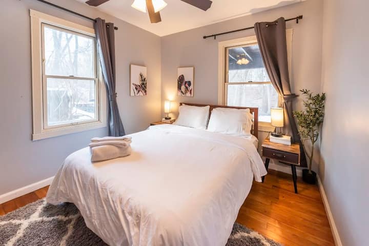 תיהנו מ - Wi - Fi מהיר, טלוויזיה חכמה של Amazon Fire, קפסולות קפה צלויות צלועות + Keurig, מיטות קצף זיכרון, מצעים נקיים, מכונת כביסה/מייבש כביסה צמודה, מוצרי רחצה סוליימו ומטבח מאובזר. אפשר לשלוח לנו הודעה לכל דבר שבו נוכל לעזור!