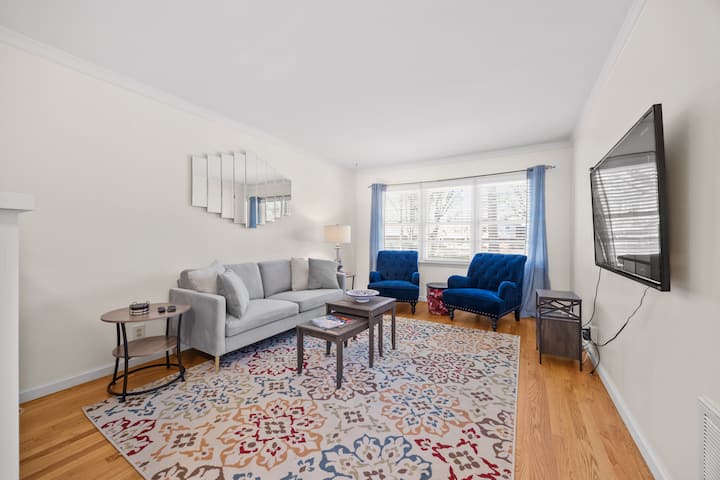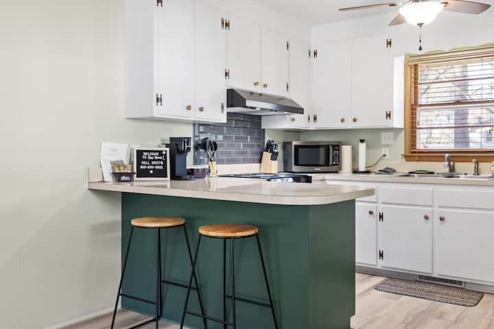 ברוכים הבאים לקוטג' הנוח שלנו, הממוקם במרכז שכונת ברנטווד השקטה של ראלי! זו נסיעה של 8 דקות ל-Wegmans, Trader Joe's ו-Costco, בתי קפה, מסעדות וחנויות. אנחנו מציעים 3 מיטות קווין סייז, טלוויזיה חכמה 55 אינץ', חצר אחורית מגודרת, בר קפה ועוד.