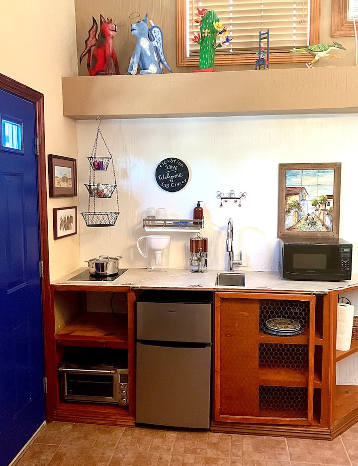 אם אתם רוצים ללכת ברגל לקניון במרכז העיר או למסייה פלאזה, זו לא הבחירה שלכם. אבל אם אתם רוצים שקט ושלווה, במקום שבו לא יפריעו לכם פעילויות עירוניות, זה יכול להיות המקום. המיקום שלנו הוא חצי כפרי, 10 דקות נסיעה לשירותים לאס קרוסס ומסילה. כאן אתם עם הטבע, צמחים מקומיים, אמנות דרום מערבית, חיות בר ובדידות.