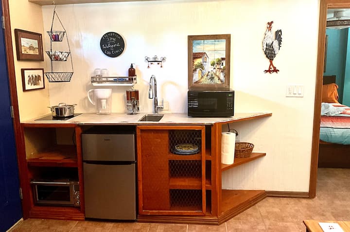 ברוכים הבאים לקזיטה השקטה, השלווה והמלאה באומנות שלנו. הקזיטה נמצאת על כביש חצי כפרי, 3 מייל מהמסילה פלאזה. הנכס המגודר בגודל שני אקרים גובל במטעי פקאן. הנכס כולל בית ראשי, קזיטה, מקומות ישיבה בחוץ, צמחים מקומיים וגלריה/סטודיו לאמנים. ללא אורחים מתחת לגיל 21. ידידותי ללהטב"קים. יש חצר גדולה ומגודרת לכלבים, עם עצי פקאן. הוא פרטי, עם שמיים כהים בלילה. תואם/מורשה על ידי המחוז. מנוהל על ידי הבעלים; אין מנהל ערוצים/נכסים.