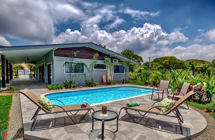 ליהנות מהחיים בחוץ בקוסטה ריקה ולהירגע בכיסאות נוח סביב הבריכה, כמו
