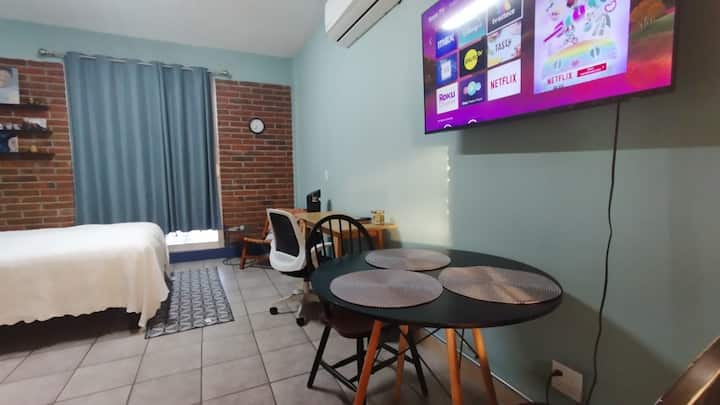 סטודיו מקסיקני מודרני בכחול וירוק