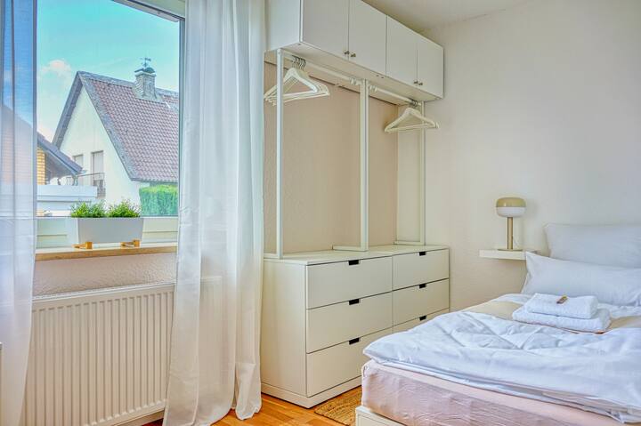 מרפסת דרומית, חניה, ליד DUS, מתאים לנסיעות עסקים