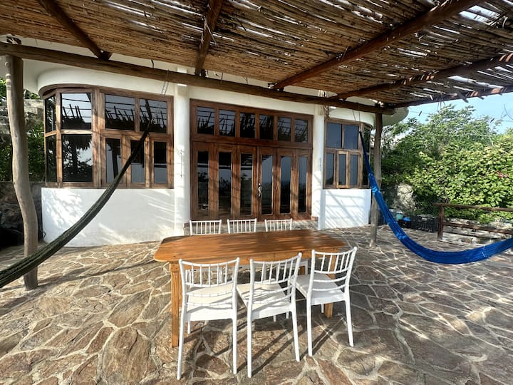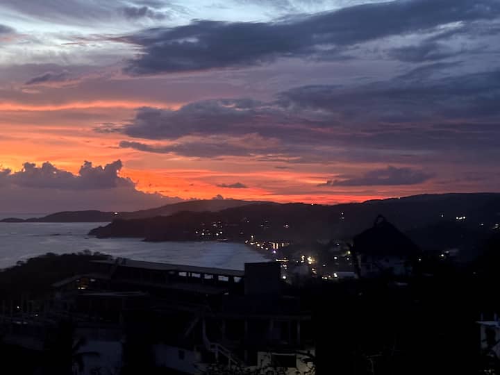 בקומה העליונה והקומה התחתונה יש פטיו גדול עם נוף מדהים של 270 מעלות לים. למעלה מרהיב במיוחד, עם הנוף המערבי שלוקח אתכם מפונטה קומט במזונטה אל החוף של זיפוליט. הנוף הדרומי מציג את הים ככל שהעין יכולה לראות, ובחלקים מסוימים של השנה ניתן לראות דולפינים, לווייתנים וחיי ים אחרים ישירות מהערסלים שם. בערך מספטמבר או אוקטובר עד מרץ, הנוף של השקיעות די מהמם, כשהשמש שוקעת ממש על קו האופק של האוקיינוס. הנוף ממשיך מזרחה, לכיוון פוארטו אנג'ל.