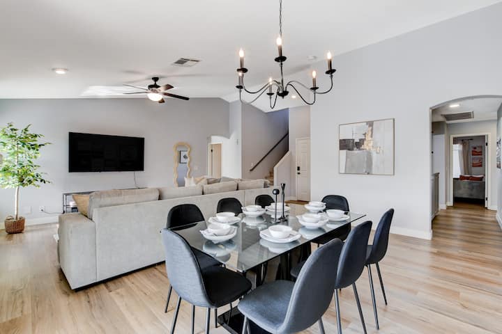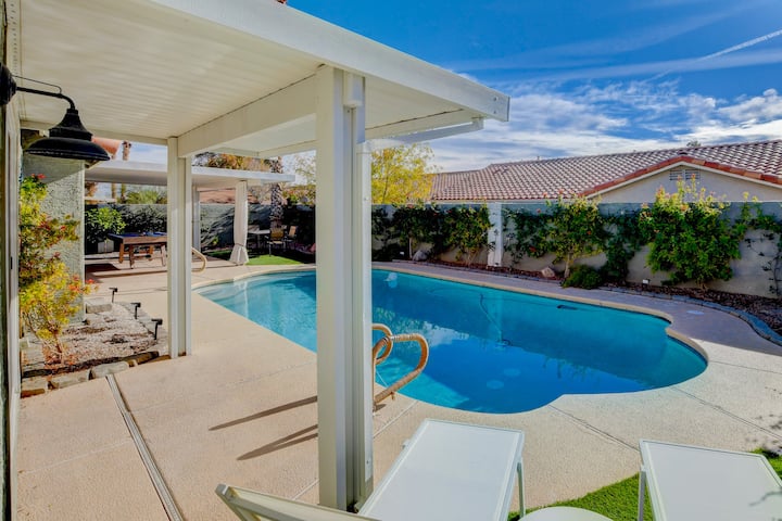 לגלות יוקרה בצפון לאס וגאס בריטריט המרווח שלנו עם 6 חדרי שינה! לצלול להירגע עם הבריכה הפרטית שלנו או לאתגר חברים למשחק ליד שולחן הביליארד בחוץ. מסעדת אל פרסקו? יש לנו אותך! בחצר האחורית יש אוכל בחוץ! חניה בשפע מבטיחה נוחות. המטבח המאובזר מזמין הרפתקאות קולינריות. הבריחה האידיאלית שלכם משלבת נוחות ובידור בסביבה התוססת של צפון לאס וגאס.