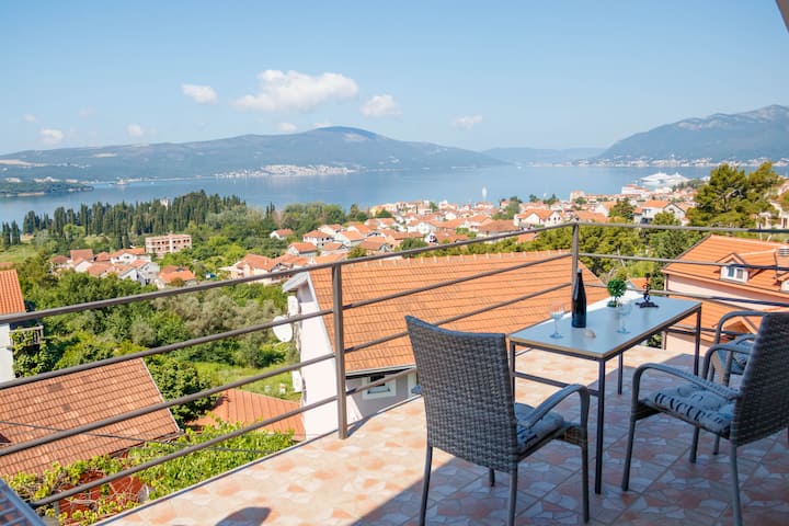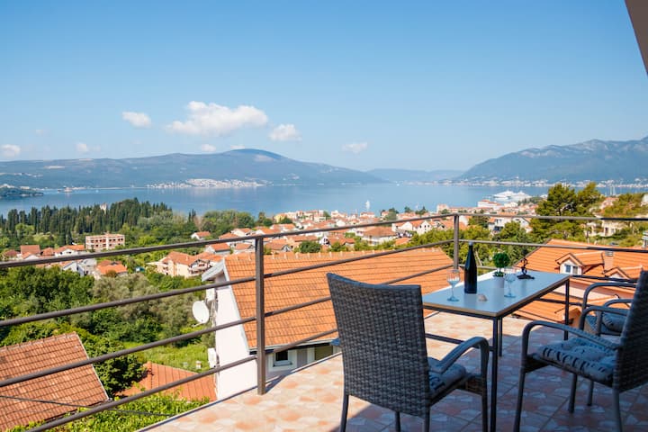 כשאתם מגיעים לדירה אתם מחכים ליין מונטנגרי ולנוף יפהפה כדי ליהנות מהערב על מרפסת גדולה ויין.