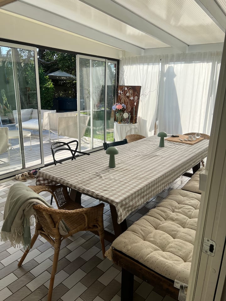 בית מקסים עם חללים חברתיים, חדר משחקים וחתול.