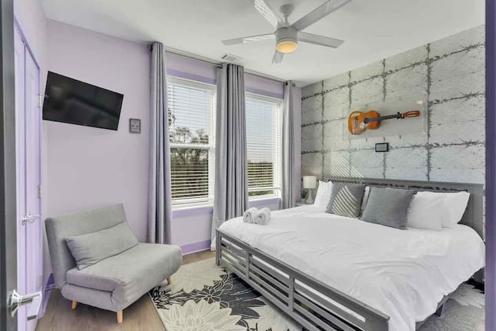 הבית הזה, שגודלו 2,050 רגל רבוע/4 קומות, תוכנן באופן מקצועי עם מזכרות אותנטיות של מוזיקת קאנטרי (גיטרות חתומות, תקליטי זהב ורשימות סטליסטים חתומות לאורך כל הדרך). עם מרפסת גג ענקית ומטבח פתוח וסלון, לקבוצה של 12 אנשים יהיה שפע של מקום לחגוג את האירוע המיוחד שלכם. ארבעה חדרי שינה גדולים מספקים שפע של מקום למסיבות הגדולות ביותר להתפזר אחרי יום בעיר ודק גג גדול הוא מקום מושלם לאירוח!