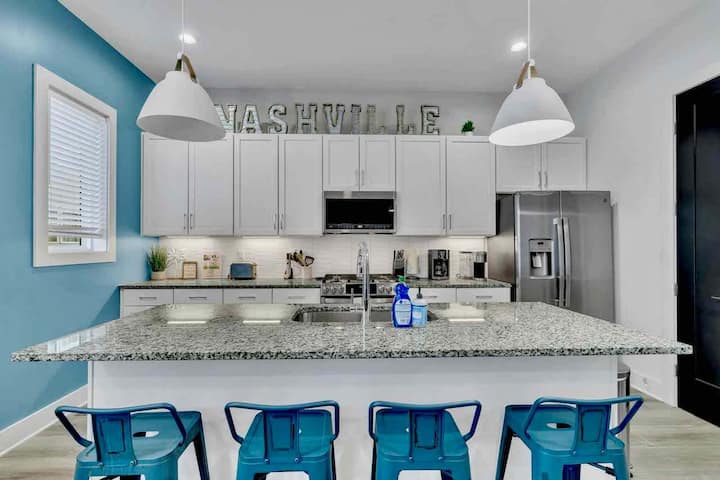 תיהנו מעיצוב יוקרתי (גיטרות 🎸 שנחתמו על ידי טיילור סוויפט, פיית 'היל ודירקס!), שפע של מקום ומיקום מצוין בשכונה מבוססת במזרח נאשוויל. אתם תהיו קרובים למסעדות טרנדיות🥙 🍻, למבשלות הבירה הטובות ביותר שלנו ולבוטיקים ייחודיים. ברודוויי, ג'רמנטאון ואזורי הבידור האחרים של נאשוויל נמצאים במרחק נסיעה קצרה עם אובר!