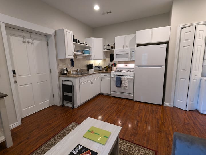 הנכס הנוח שלנו מושלם עבור עד שני אורחים. תיהנו משהייה נינוחה בחדר השינה הנעים עם מיטת קווין סייז וארון. חדר הרחצה המשופץ במלואו מואר ומרווח, שנועד לשפר את הנוחות שלכם. אל תתנו לגודל המטבח הזעיר שלנו להטעות אתכם - זה סוס עבודה! מצויד במקרר, טווח גז ותנור, מיקרוגל, Keurig, מכבש צרפתי, קומקום חשמלי וטוסטר אובן. אמנם אין מדיח כלים, אבל אנחנו מספקים סבון וספוגים בשפע לנוחיותכם. להירגע בסלון הנוח עם טלוויזיה ומבחר חומרי קריאה. היחידה כוללת מכונת כביסה/מייבש כביסה משולבת, מושלמת לכביסה או לייבוש הציוד שלכם אחרי יום במדרונות.