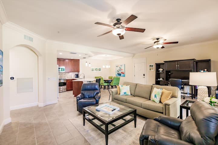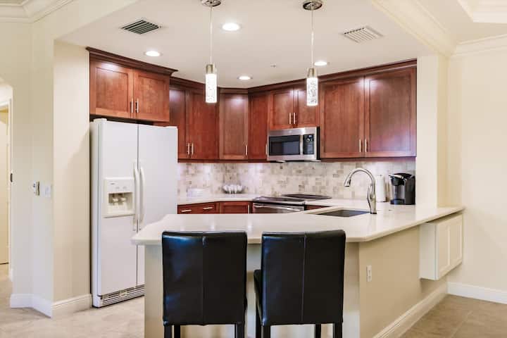 דירה מוארת ומרווחת עם בריכה, קרוב לחופים!
