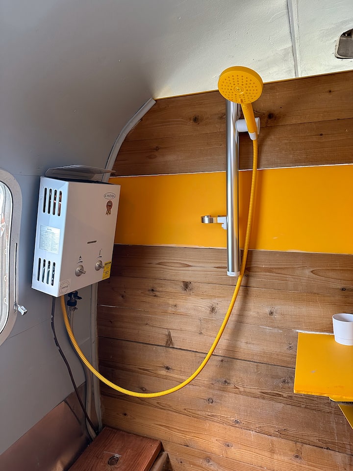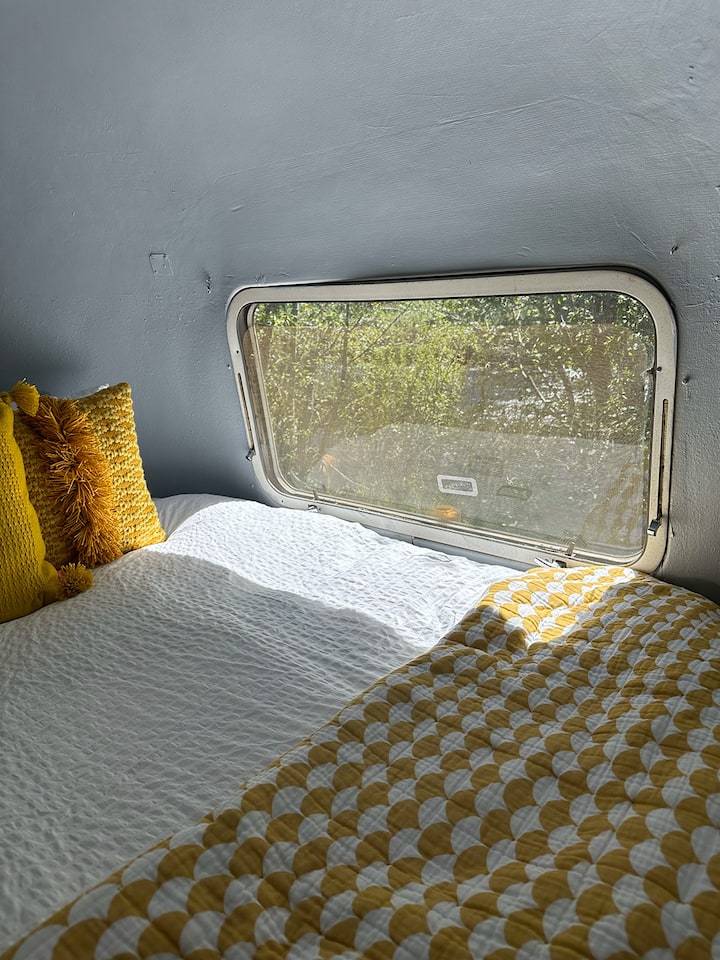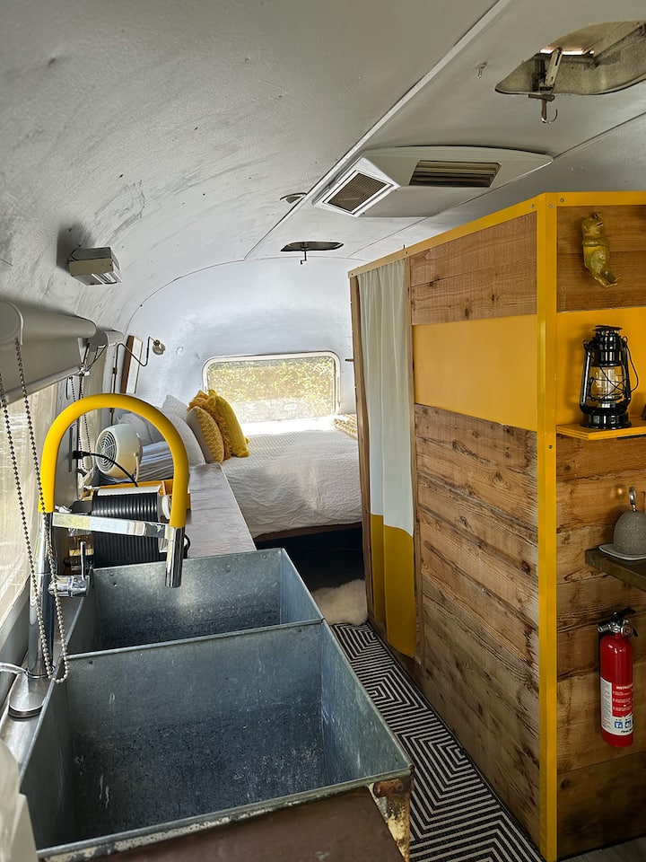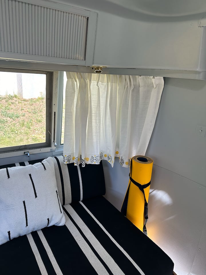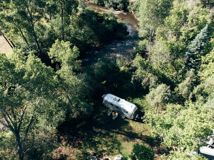 קרוואן Airstream וינטג' על גדת הנהר