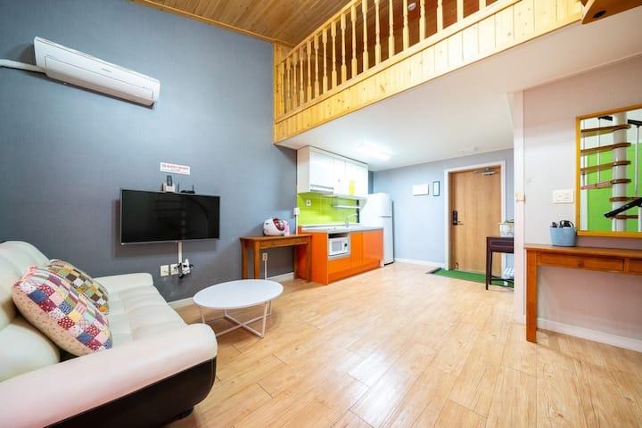 דופלקס: סלון + מטבח + חדר שינה A (2 זוגות) + חדר רחצה אחד