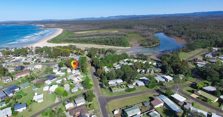 החצר האחורית היא חלל שליו עם אזור פטיו קטן לברביקיו ואזור עם דשא, מושלם לארוחות בחוץ או פשוט להירגע באוויר החוף הצח.