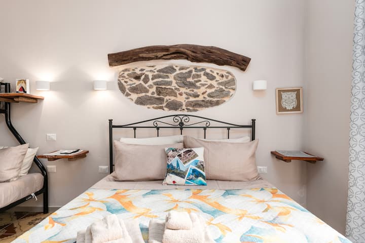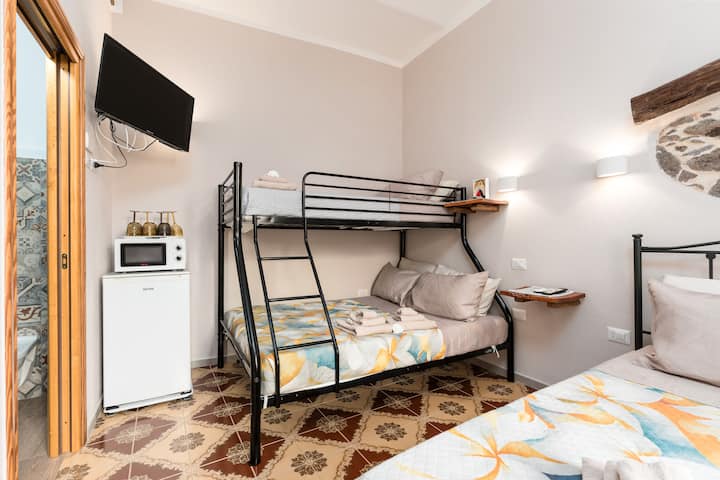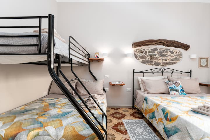 1 מיטה זוגית רחבה, 1 מיטת יחיד, מיטת קומתיים 1